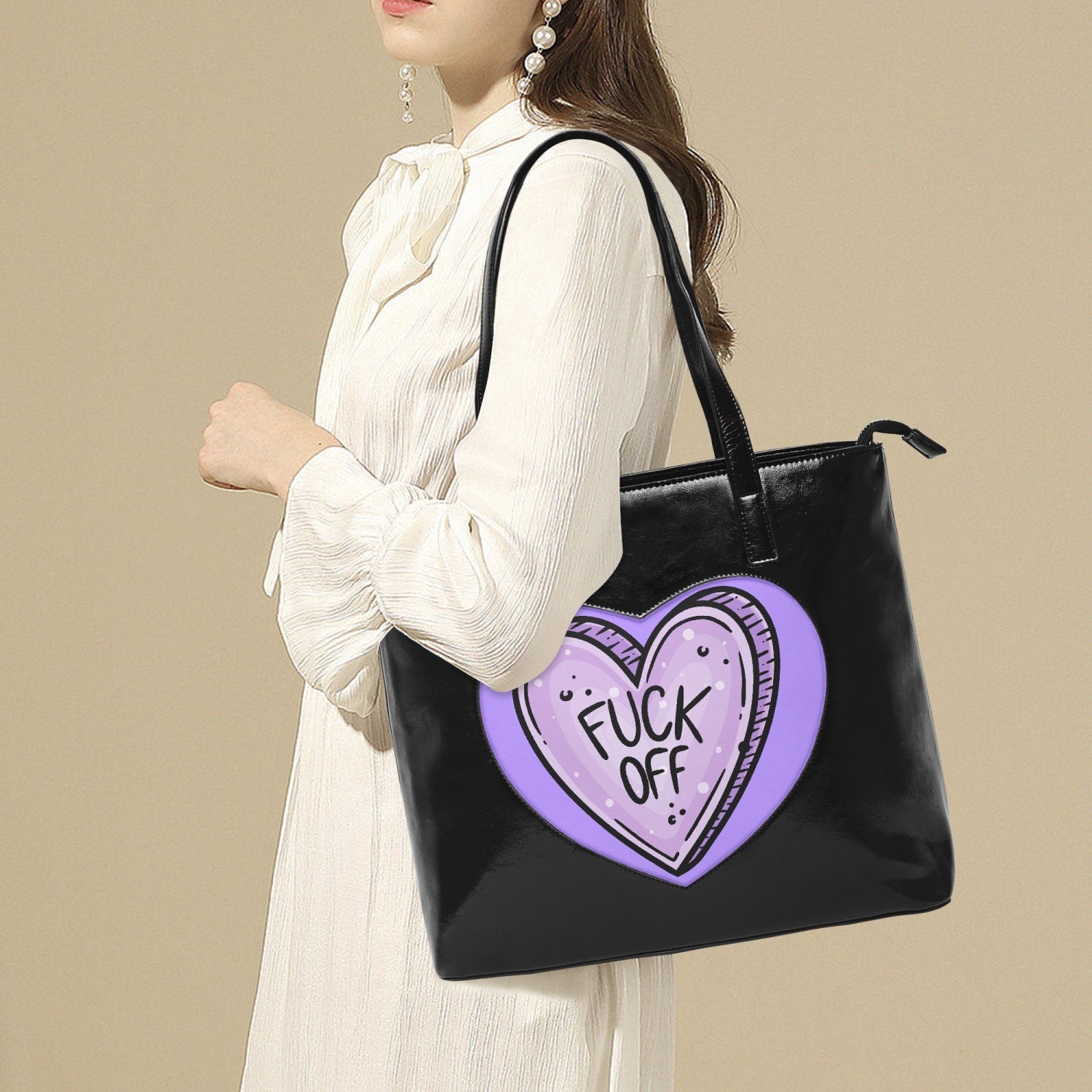 F off Heart Tote Bag Purple